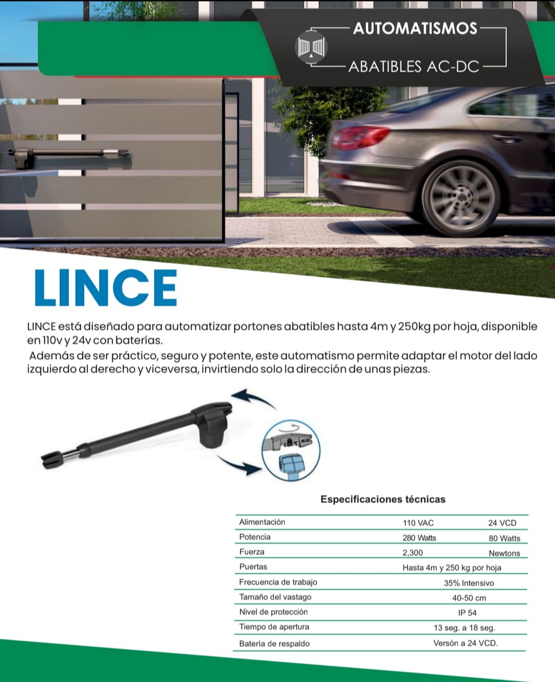 cuenta con regulación de carreras en apertura y cierre y además de parada suave en su recorrido de cierre.